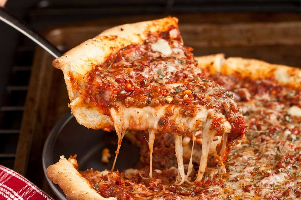 Chicago deep dish is an amazing idea. Imagine a cake that has all the cakey ingredients substituted by various meats and vegetables, and plenty of cheese. In essence, that's the essence of deep dish. It's likely that you only require one or two slices of deep dish.