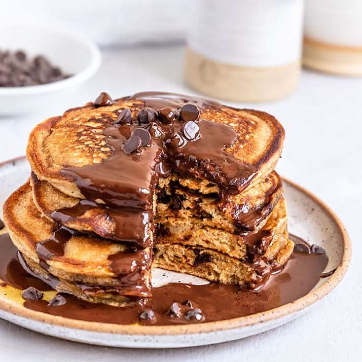 The simple pancakes we love, however adding chocolate chips blurs the lines between dessert and breakfast. It's so delicious, there's no need for syrup or butter. It's possible to substitute M&Ms in place of chocolate chips if you would like to be remembered into history as the most brave person in the world.