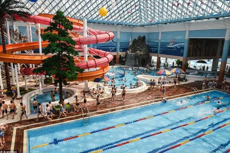 1. This is Munsu water park located in Pyongyang with its colorful water slides, pools and artificial waterfalls. As you can see it's extremely popular with the locals.