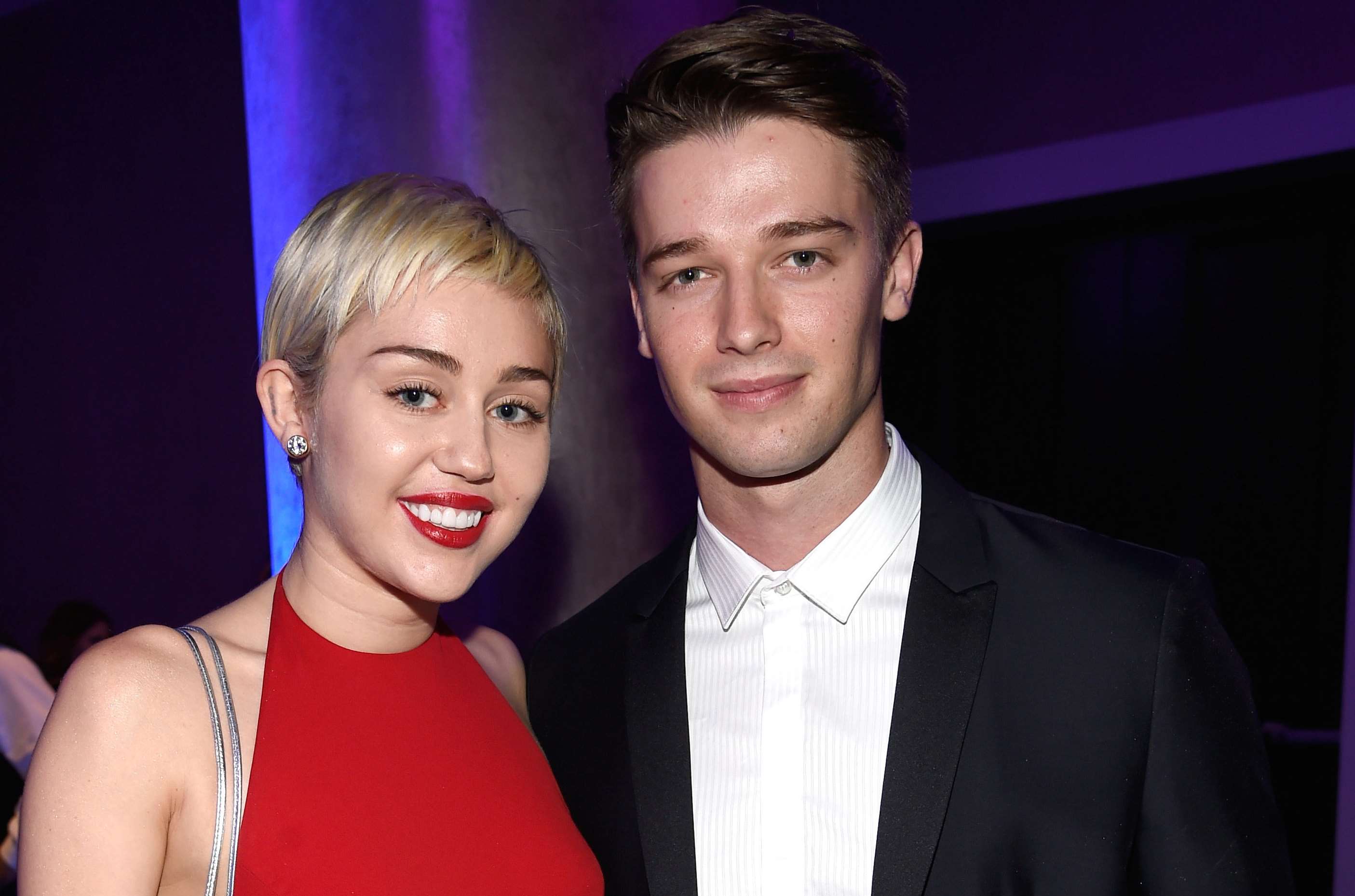 Patrick and Miley were sexy in 2014, during a break from Liam. The couple had a 5-month romance and took an intimate trip to Hawaii. Patrick admitted to having an ex-girlfriend in 2011 declaring "My eyes... is fixed upon Miley". Cyrus went to a ski resort with Patrick's family. He was found in a cheating relationship with a woman when the photographer took body shots however, he was hesitant to tweet "Omg." This is my best friend's girlfriend. ..." It's true...